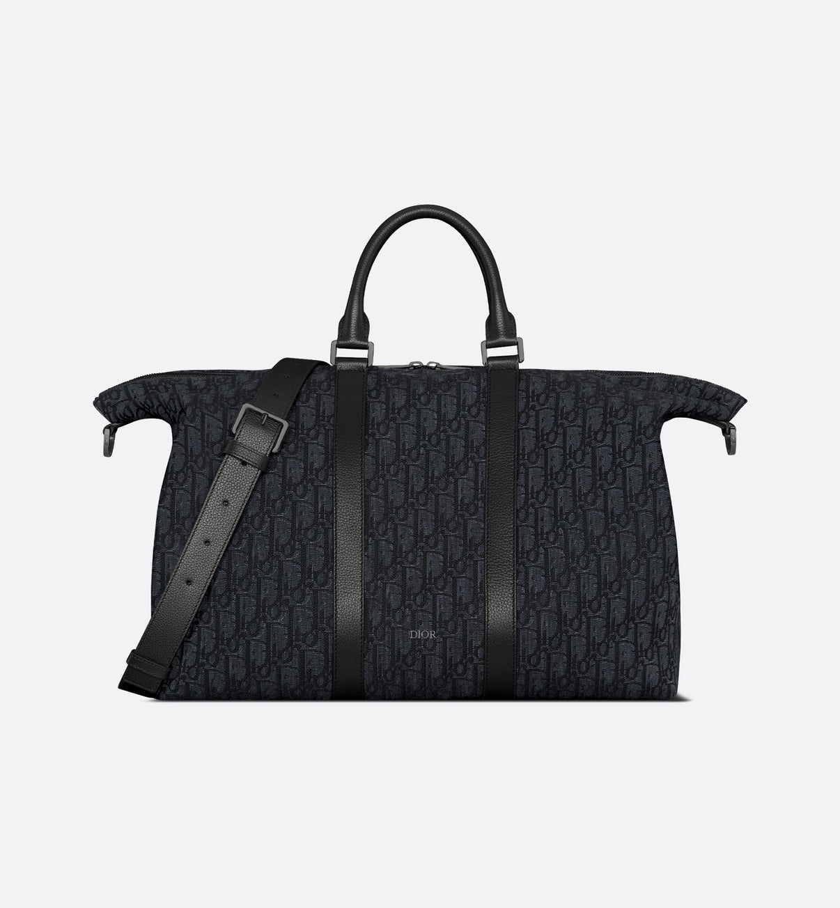 Weekender 40 Black Dior Oblique Jacquard and Black Grained Calfskin