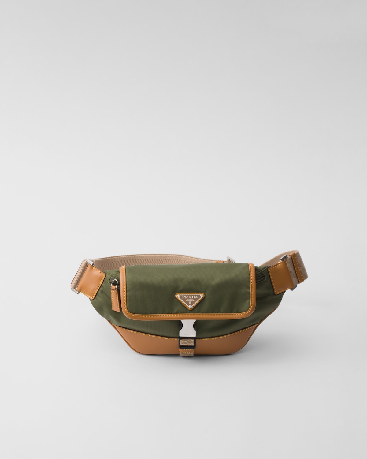 PRADA Re-Nylon and Leather Shoulder Bag Color Army Green/Caramel