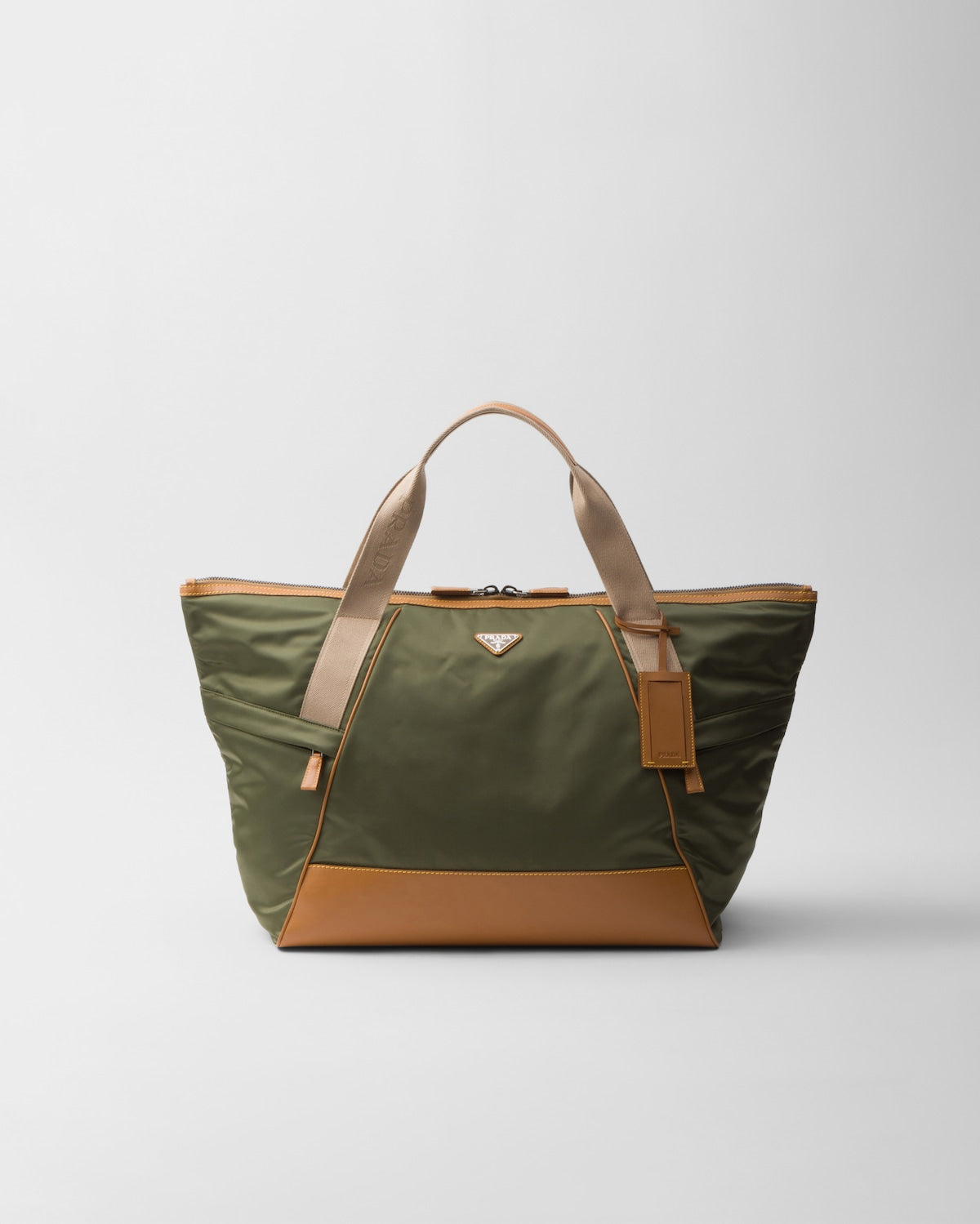 PRADA Recycled Nylon and Leather Travel Bag Color Army Green/Caramel